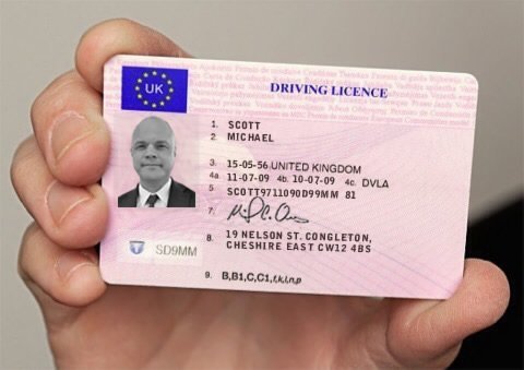 We looked around the Internet for a sample of his Fake Driving licence and found many examples in use, mostly as a sample on sites that make forgeries. It is a stock photo anyway. His is a pretty useless one with many mistakes.